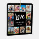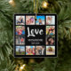 Create your own personalized 12 photo collage, Christmas holiday ornament with your custom images on a simple modern black background. The Christmas holiday ornament face also features your family name, established year and a "Love" handwritten script. Add your favorite photos, designs or artworks to create something really unique.