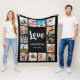 Create your own personalized 14 photo collage, fleece blanket with your custom images on a simple modern black background. The fleece blanket face also features your family name, established year and a "Love" handwritten script. Add your favorite photos, designs or artworks to create something really unique.