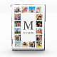 Create your own personalized 16 photo collage, block white background. The block face also features your monogram. Add your favorite photos, designs or artworks to create something really unique.