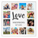 Create your own personalized 12 photo collage, acrylic print with your custom images on a simple modern white background. The acrylic print face also features your family name, established year and a "Love" handwritten script. Add your favorite photos, designs or artworks to create something really unique.