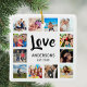 Create your own personalized 12 photo collage, Christmas holiday ornament with your custom images on a simple modern white background. The Christmas holiday ornament face also features your family name, established year and a "Love" handwritten script. Add your favorite photos, designs or artworks to create something really unique.