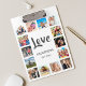Create your own personalized 14 photo collage, clipboard with your custom images on a simple modern white background. The clipboard face also features your family name, established year and a "Love" handwritten script. Add your favorite photos, designs or artworks to create something really unique.