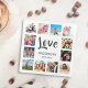 Create your own personalized 12 photo collage, coaster with your custom images on a simple modern white background. The coaster face also features your family name, established year and a "Love" handwritten script. Add your favorite photos, designs or artworks to create something really unique.