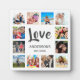 Create your own personalized 12 photo collage, plaque with your custom images on a simple modern white background. The plaque face also features your family name, established year and a "Love" handwritten script. Add your favorite photos, designs or artworks to create something really unique.
