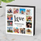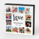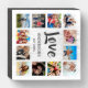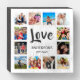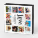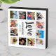 Create your own personalized 12 photo collage, wooden box sign with your custom images on a simple modern white background. The wooden box sign face also features your family name, established year and a "Love" handwritten script. Add your favorite photos, designs or artworks to create something really unique.