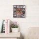 Create your own personalized 12 photo collage wall clock with your custom images on a rustic farmhouse style wooden plank background. The clock face also features your family name, established year and a "Love" handwritten script. Add your favorite photos, designs or artworks to create something really unique. To edit this design template, simply upload your own images and edit text fields as shown above. You can easily add more text or images, customize fonts and background.