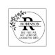 This rubber stamp features a monogram, a family name and address with a leaves frame.