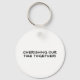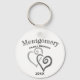 This family reunion keychain features two shades of gray linked hearts over a white background centered with template family details. Fill in the personal information template fields, remove any text or click customize to select a typeface color, size, and style you prefer. A nice keepsake for the family.