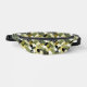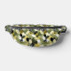 This custom fanny pack is shown in a black and olive green multi color animal art print with black color accents, buy as shown or add to it.