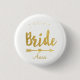 Lasting keepsake - beautiful faux gold foil wedding party button. Add the Bride's name, and if you prefer change the white background to the color of your choice. Fun for bridal+shower, bachelorette party, wedding announcement gathering, and more!
