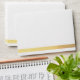 To add an extra touch of class to your wedding invitations, send these elegant faux gold foil envelopes with option return of address at the back of envelope. Gold strips in front and back. COLOR: White - can be changed to any color. Can be edited with your font and size. Envelopes can be in different sizes.