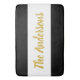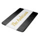 Faux (not foil) gold script can be personalized with your desired message. Gold look text is on a large white stripe going across the center. A black stripe is above and below the white one.