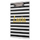 Personalize your clipboard with the recipient's name in faux gold script on a black and white striped pattern.