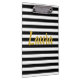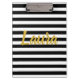 Custom Faux Gold Script on Black and White Stripes Clipboard