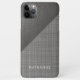 Contemporary light, medium, and dark gray grey colored faux leather and linen texture look cellphone case. With room to customize with a name, monogram, or initials of your choice. Beautiful, modern, and cool cover for the trend-savvy and art-loving hip trendsetter, artsy motif lover who wants to protect their phone from dust and dirt, wear and tear. This design is available in Apple iPhone 6, 7, and 8 Plus, 10 or X, XR, XS, 11, 12, 13 Mini, 14, 15 Plus, and Pro Max cellphone cases. Show off your style, look fashionable, and feel stylish with a unique design on a mobile device accessory of your choice.