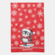 Custom Festive Red Penguin Ice Skater Christmas Kitchen Towel