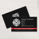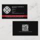 This design features a firefighter flag theme with a thin red line stripe. Customize with the name, position, and contact information of the firefighter, captain, chief or any employee working at the fire department. Features a QR code on the back to add your website.