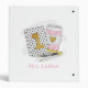 Stay organized in style with this Custom First Grade Teacher 3-Ring Binder, featuring a chic illustration of a white notebook with black polka dots, a pink coffee cup with a gold heart, a black pen with white polka dots, a yellow pencil, and a classic ruler. Personalize it with your teacher name for the perfect classroom binder, lesson planner, or paperwork organizer.