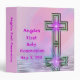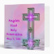 Pretty and pink and purple colors binder with "Angela's First Holy Communion" and the date original art design with a special cross with star burst all reflected in the peaceful water ripples below. Easily change the name and the date. Remember this special holy day with this custom binder, journal, scrapbook, or photo album. See matching First Communion stickers, magnets, binders, shirts, invitations, postage stamps, etc., at the MVDesigns store here at Zazzle.