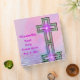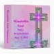 Pretty and pink and purple colors binder with "Elizabeth's First Holy Communion" and the date original art design with a special cross with star burst all reflected in the peaceful water ripples below. Personalize the spine also or just delete the sample text. Easily change the name and the date. Remember this special holy day with this custom binder, journal, scrapbook, or photo album. See matching First Communion stickers and magnets as well as other colors Communion gifts at the MVDesigns store.