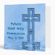 Nice blue colors binder with "Peter's First Holy Communion" with the date original art design with a special cross with star burst all reflected in the peaceful water ripples below. Easily change the name and the date on the cover and the spine. Remember this special holy day or confirmation, or baptism with this custom binder, journal, scrapbook, or photo album. See matching First Communion stickers, buttons, pins, magnets, and t-shirts as well as other colors and styles of Communion gifts at the MVDesigns store.