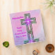 Pretty and pink and purple colors binder with "Name's First Holy Communion" and the date original art design with a special cross with star burst all reflected in the peaceful water ripples below. Easily change the name and the date. Remember this special holy day with this custom binder, journal, scrapbook, or photo album.