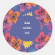 Custom blue floral sticker for packaging, label, books, notebooks, school. Pretty blue yellow , orange feminine round sticker with colorful floral pattern. Personalize floral blue sticker with name, adress, message for birthdays, gifts, products, business or personal use. Blue sticker for women, girls, mothers, friends, teachers, customers.