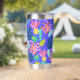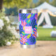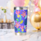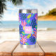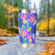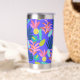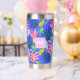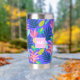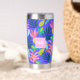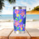 Custom floral blue monogram cute Thermal Tumbler with initials, name, quote, message. Pretty colorful modern floral pattern with pineapples, cactus, flowers for a unique gift. Colorful pink blue yellow thermal bottle for women birthdays, mothers birthdays, moms, wifes,teachers, boss, friends, coffee tea addict for birthdays, christmas, mothers'day. Use this colorful tumbler for travel, transport for hot tea, hot coffee, cold beverages.
