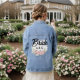 A stylish denim jacket perfect for the bride-to-be. It features a beautiful watercolor floral wreath design with the word "Bride" in elegant script, and space below for custom initials (A&C), combining romantic flair with casual style.
