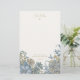 This elegant floral personal stationery showcases delicate flowers beautifully arranged in shades of stylish blue and soft gold, creating a colorful yet chic aesthetic perfect for everyday correspondence. Featuring an inspiring Shakespeare quote in sophisticated script typography—"Where words are scarce, they are seldom spent in vain."—this stationery set provides a refined, literary touch ideal for thoughtful communication.