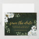 The save the date card features a lush green color scheme, symbolizing the allure of a magical forest. The custom floral design adds a touch of natural beauty and elegance, setting the stage for a fairy-tale-inspired wedding celebration.