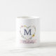 Add a sweet touch to your mornings with this custom floral mug featuring a monogrammed heart wreath and your name in soft script on a pastel ribbon. A lovely personalized gift for birthdays, Mother's Day, or bridesmaid proposals. Gentle colors and a feminine design make this the perfect mug for tea or coffee lovers. Customize yours now!