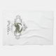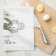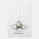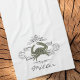 Custom Flourish Crab Kitchen Towel - Customize with your initial and name. Lettering in dark gray and matches flourishes. Crab is olive green.
