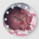 Insert your baby girl or little girl's photo or any photo into this cute custom clock with white flower numbers to make a really personalized gift idea or unique wall decor.