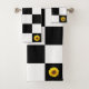 Custom Flower on Black and White Checkered Pattern Bath Towel Set