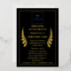 Each 5×7 card is crafted with premium foil printing (available in gold, silver, or bronze) on a deep black base, creating a sleek, professional finish that mirrors the look of a premium plaque.