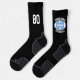 Make your own personalized high-performance athletic crew socks for football players and teams! With a Carolina blue (light blue) football on the outside and large jersey number on the inside. Click to personalize the template and type your own football team name, football player jersey number and football player position in the custom text boxes. The color of the sock itself (currently black) can be customized as well. Makes a great team gift for football teams at all levels, especially football teams with Carolina blue (light blue) team colors! The high-performance athletic socks can we worn to football practices or games.