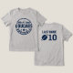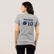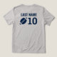 Rep your player's team with this gray tee featuring a bold circular badge design with a customizable team name, helmet with player number, stars, and "Football" in navy. The back features a customizable last name, football graphic, and large player number for a jersey-inspired detail that stands out in the stands. A spirited front-and-back design that gives football moms a polished, personalized game day look.