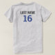 Cheer from the stands in this steel gray tee featuring "Football" in royal blue script with a brown football graphic and customizable team name and player number. The back has a jersey-style customizable last name in dark gray and large blue player number. A versatile spirit wear staple for football moms looking for a polished game day look in classic blue and gray.