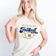 Cheer on your player in this oatmeal tri-blend tee featuring "Football" in navy script with a gold football graphic and customizable team name and player number. The back features a jersey-style customizable last name in navy and large gold player number. A warm, neutral spirit wear option for football moms who want a polished sideline look that goes with everything.