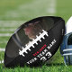 Custom Football with Name, Number, Team and Photo. Personalize it with your photo, name, team name and the year. The text is trendy white and red typography on a black background. You can change any text on the football or erase it. A perfect gift for football players, teammates, coaches, your friends and family. Great keepsake to remember your favorite sport.