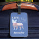 Start the vacation early with this cute Frenchie silhouette luggage tag that says, "Life is better at the beach" in a soft blue and pink design. You can have the design on both sides and customize with your name OR go for the single sided version with the card insert on the other side.