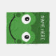 Add your name to this cartoon frog face blanket. Great for a kids frog themed room.