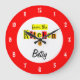 "From the Kitchen of" retro custom label art with scripty and cute black letters against color blocks of red, orange and yellow, on a red face with white numbers, and room for your name in script letters. Click Customize It to change background colors, fonts, change elements and more, even save your design for later.