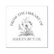 A beautiful addition to your personal library. This design features curved from the library of text around a whimsical design of an open book. Add your name to make this a completely custom, one of a kind stamp!