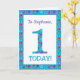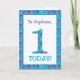 A very pretty 1st Birthday Card to personalise for any name or relative, with the number 1 and the border in bright, ditsy flowers on a turquoise blue background. You can also change the inside message if you wish.
