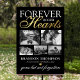 Elegant funeral memorial foam board poster featuring 5 photos of your lost loved one, the text "forever in our hearts", their name, birth/death dates, a faux gold foil heart, and the remembrance saying "gone but not forgotten".