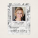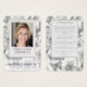 This simple, black and white prayer card has a floral pattern with butterflies.