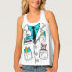 Women's All-Over Print Racerback Tank Top, White Piping, S