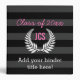 Elegant personalized trendy style. Wide horizontal black on black Stripe background with pink lettering and white laurel wreath. Add any year, and monogrammed 3-letter initials to this personalized graduation favor.